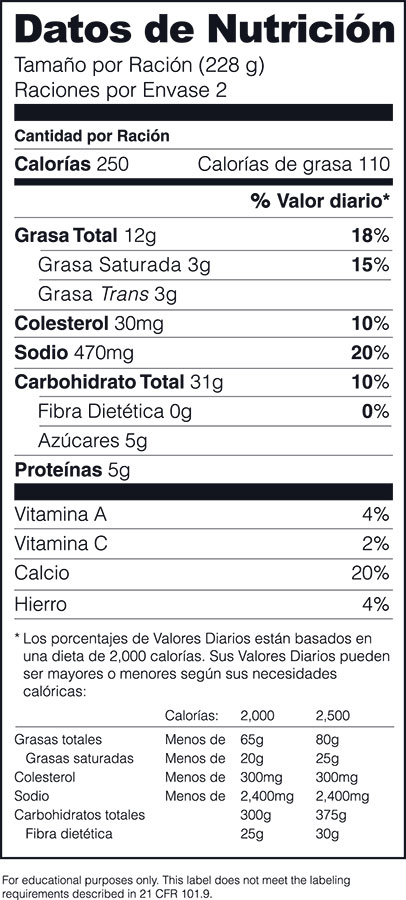 Leyendo una etiqueta de alimentos